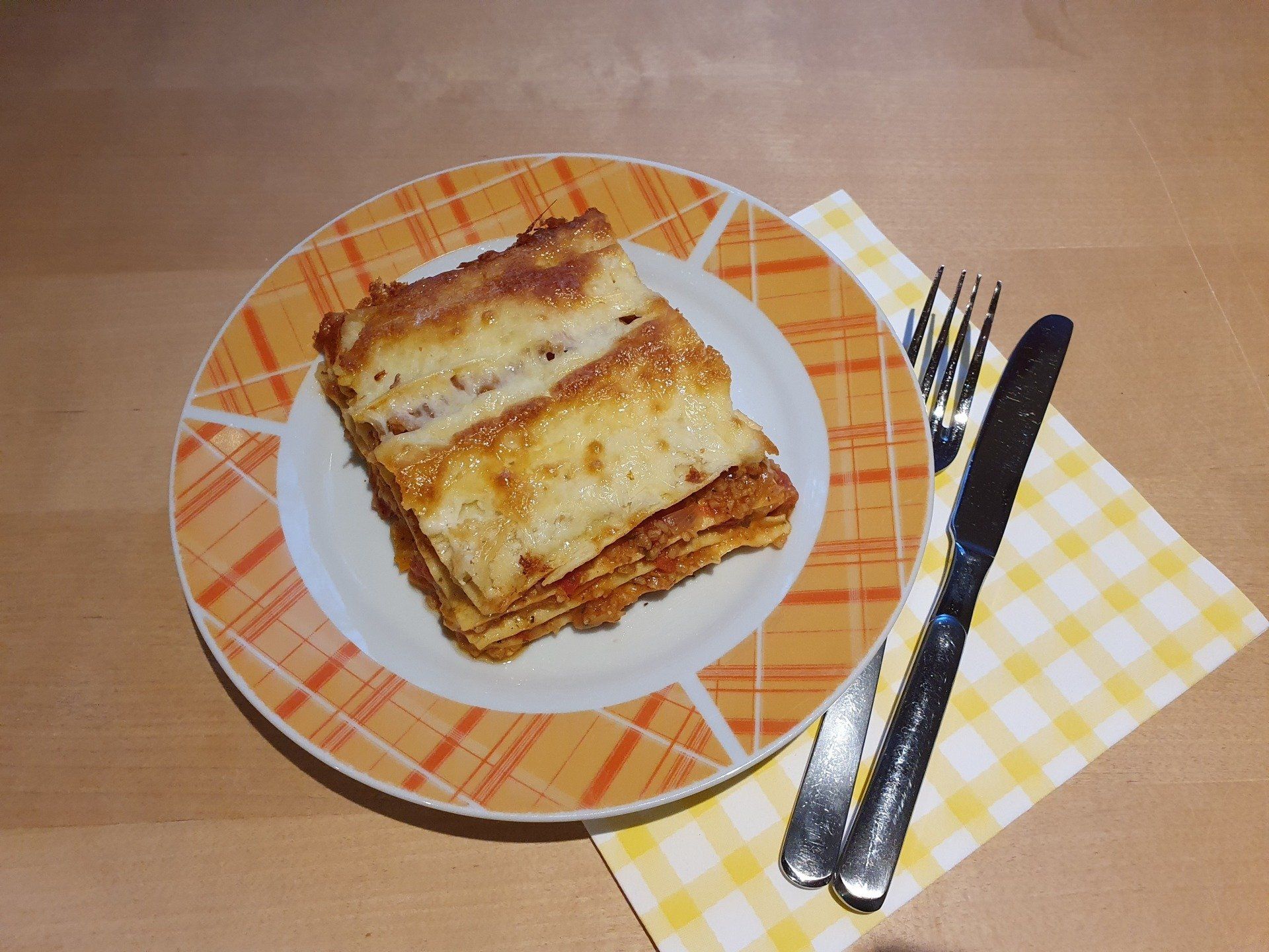 Tipp: Das Rezept funktioniert auch mit trockenen Lasagneplatten. Dazu benötigen Sie lediglich etwas mehr Flüssigkeit in der Soße: Je nach Geschmack mehr Brühe oder mehr Tomaten hinzufügen. Beim Schichten mit Soße enden und diese mit reichlich Käse bestreuen. Die Backzeit beträgt dann etwa 40 Minuten.